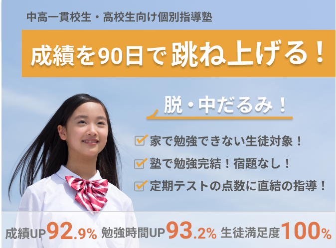 中高一貫校生が「中だるみ」状態になってしまったら、一般的な塾では、なかなか成績は上がりません。