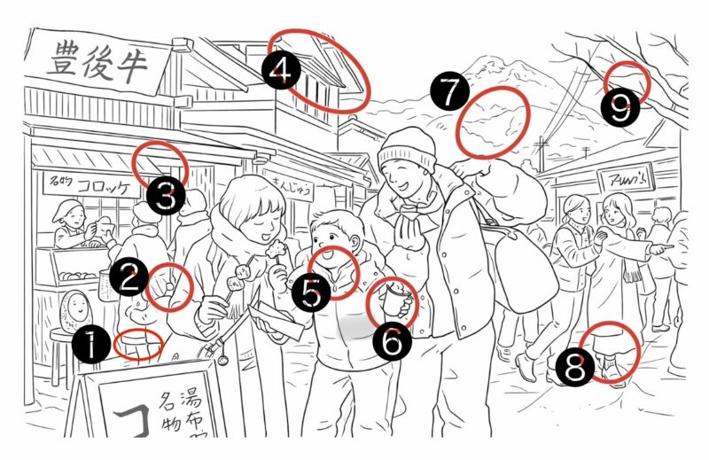 2026年1月10日付(紙面掲載)の日経新聞「脳活 間違い探し」の答えをまとめました。大分・由布院篇の全9カ所を紹介します。